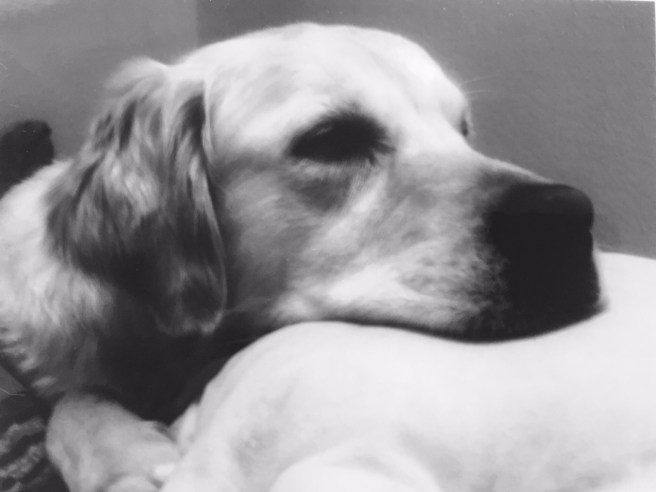 2. Eine schöne würdevolle Liebeserklärung an den ehemaligen Begleiter. Der Golden Retriever in unserem Haus ist sanftmütig und anhänglich aber kein Held, er hat enorme Angst vor dem Klopfen von Stöckelschuhe und natürlich vor Gewitter.