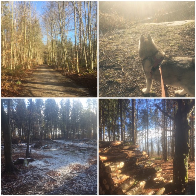 Es arbeitet sich auch viel schöner mit Tschuko im Schlepptau. Im Büro liegt er unter dem Tisch und seine Anwesenheit ist fast nicht spürbar. Aber in der Pause, da muss er raus und ich nutze die Gelegenheit eine Stunde durch den winterlichen Wald zu laufen. Eigentlich sind es zwei Stunden und damit 1,5 Stunden mehr als üblich. Meine Kollegen sagen nichts. So ein Hund braucht Auslauf, das verstehen sie. Auch, dass ich so verdreckt zurück komme, dass ich mich von Abteilungsfremden Menschen fernhalte. Mit den derben Stiefeln und der Schlammbespritzten Jeans lässt man mich besser nicht mal zum Empfang um ein Einschreiben abzuholen. Auch den Kaffee bringt man mir aus der Kantine mit. Ich finde es ganz herrlich ein Pflege-Frauchen zu sein.