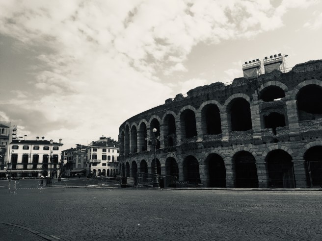 Und hier das passende Bild dazu. Im vorderen gelben Haus war es das rechte Fenster im ersten Stock, das zu meiner Wohnung gehörte. Fast immer, wenn ich in Verona bin, gehe ich einmal durch die kleine Straße. Es ist sicher nicht die hübscheste, aber es war einmal meine. Heute erscheint mir die Straße breiter, als ich sie in Erinnerung hatte. Naja, es steht auch kein Feuerwehrwagen mitten darin. Ich mag sie noch immer, die Via Museo. Überhaupt ist mir Veronetta noch immer das liebste Viertel Veronas. Ruhiger als das Zentrum, in dem es vor Touristen nur so wimmelt und zugleich nie wirklich still, weil die Gassen oft so schmal und klein sind, dass man bei offenem Fenster das Leben nicht nur sieht sondern auch hört.